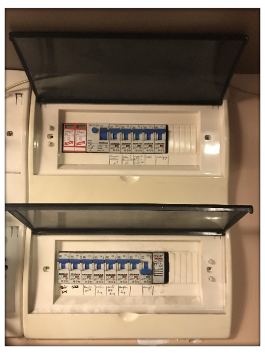 A fotón egy 15 éve épült lakóház elosztószekrénye látható, amin a lakás összes vezetéke keresztül megy.
